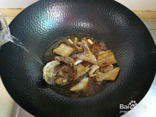 放入适量黄酒,放的时候要顺着锅边转圈倒入