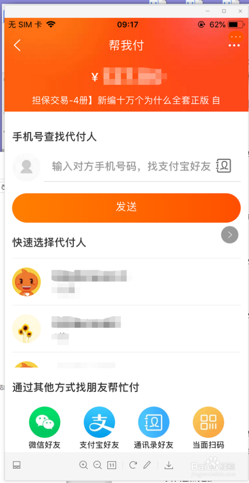 在“帮我付”页面中选择帮忙付款的朋友发送即可