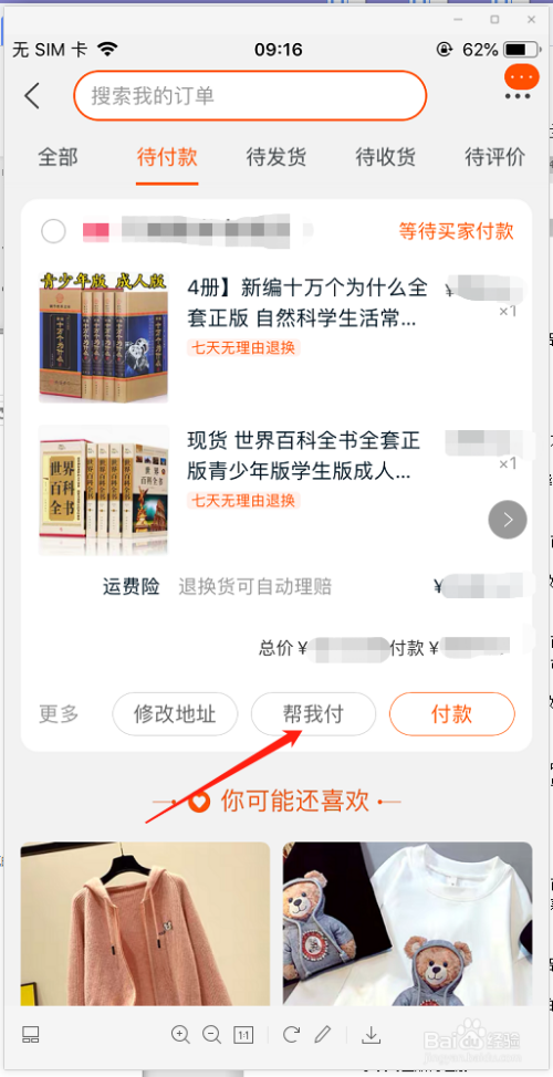 进入待付款界面后选择要付款的商品然后点击下方的“帮我付”