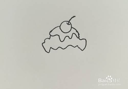 第四步,这里我们接着画第二层的奶油个,在刚刚画好的奶油的下面,用波浪线画出第二层的奶油,具体如下图所示。