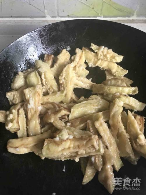 2茄子去皮切拇指宽的条 用水漂洗控干