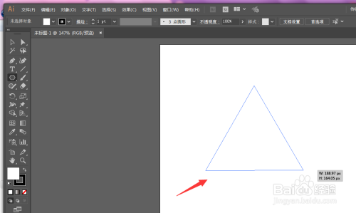 然后鼠标左键在工作区绘制图形,按住鼠标不松手,然后按键盘左右键可以调节边数,选择三边形设置