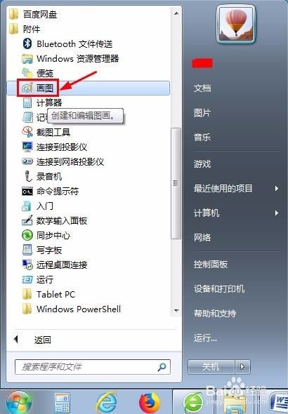 第一步:在电脑“开始--附件”中打开画图工具。