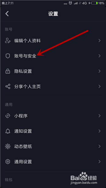 在打开设置界面后找到并点击【账号与安全】这个选项。