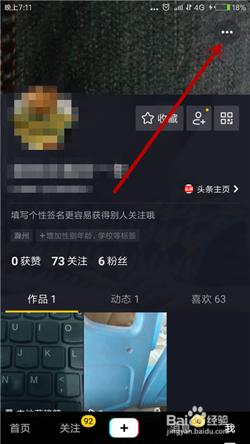 这样可以打开抖音个人主页,接着点击右上角的【...】选项。