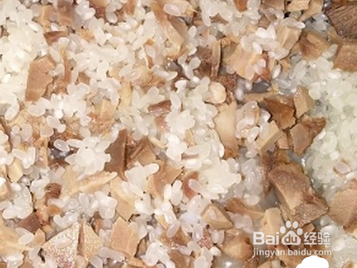 接着我们把切好的熟猪肝和大米放在一起进行搅拌,放电饭煲里,加入水和食用盐,将菠菜和姜沫放进去煮。