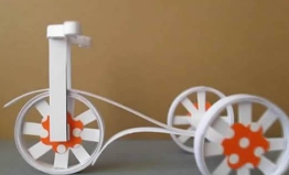 可爱的三轮车模型,像是孩子的玩具,而你也可以给它加上车厢,将它改造成漂亮的花车。只需要准备卡纸、硬纸板、剪刀和胶水即可,如果有胶带筒等圆筒形材料,也一样可以做,似乎会更省力一点!~