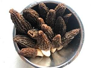 此时清洗羊肚菌,放盆里。(老妈说不要太早清洗新鲜羊肚菌,怕晾坏了)(?如果是干的羊肚菌的话需要提前泡发)