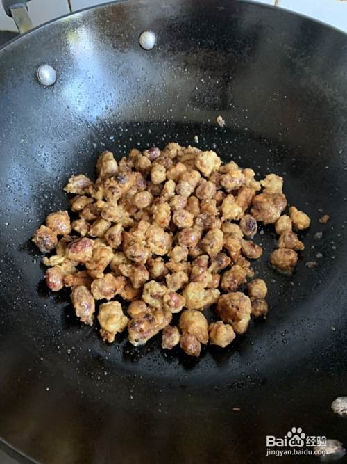 起锅烧油,油温6成热倒入花生米,中小火慢炸,用勺子不停翻炒,炸至表面酥脆盛起待用