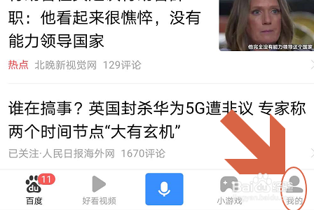 百度闪付不是独立的APP,我们需要打开百度APP,点击应用右下角的“我的”;