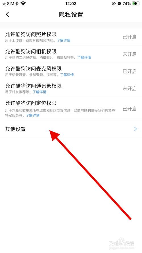 点击隐私设置选项进入。