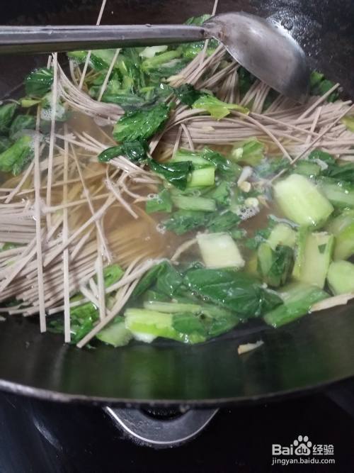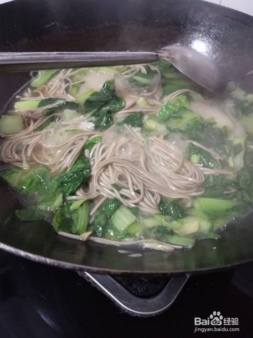 锅里放油,加热。待油温升至七成热时,放入葱姜蒜煸炒,待葱姜蒜煸炒出香味,放入小白菜翻炒,加入生抽翻炒。加水适量,打水开锅后,放入挂面煮熟。出锅前加盐,味精,调口调味出锅,如果喜欢再滴上几滴香油最好,就可以开吃了。
