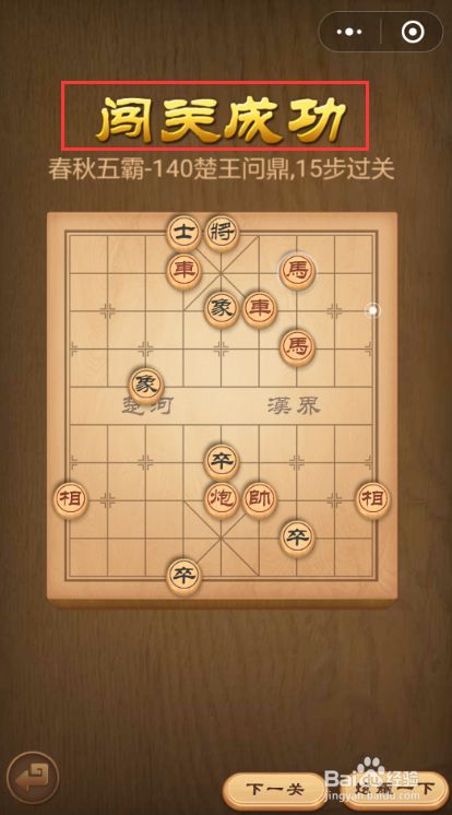 介绍微信中国象棋残局闯关中春秋五霸第140关楚王问鼎的闯关技巧。