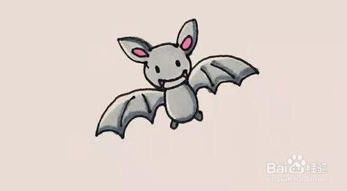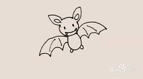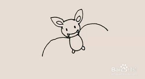 蝙蝠头部下面画上椭圆的身子,还有小小的脚。