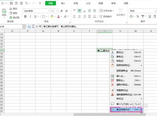 用"鼠标右键"选中该单元格,点击"单元格格式"菜单。