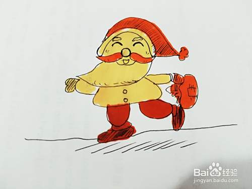 最后,我们来拿出画笔为卡通圣诞老人涂上好看的喜庆的颜色,如下图