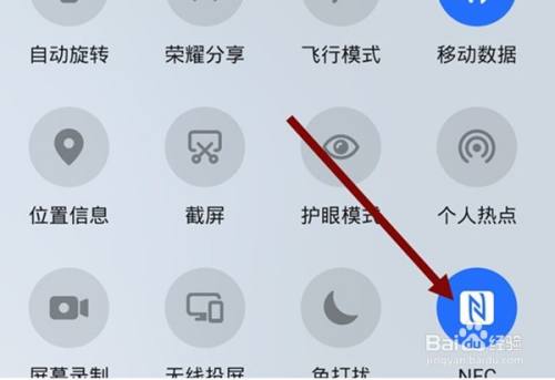 首先我们下拉手机的菜单,点击里面的nfc功能。
