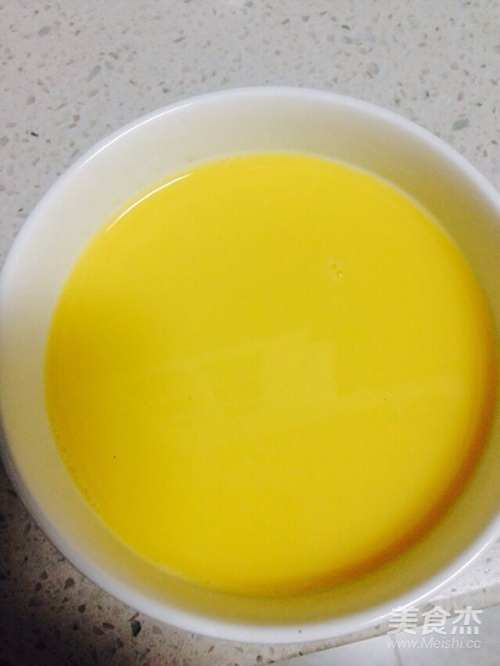 在鸡蛋液中倒入温水,过滤