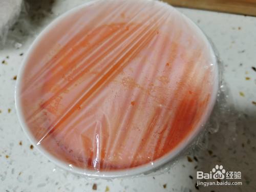 用保鲜膜包上整个碗,然后在保鲜膜上方扎出几个孔,这样不会有蒸汽,而且整出来的蛋糕更加松软,锅中加水,包好保鲜膜之后,将碗放入锅中,隔水蒸上15到20分钟,然后闷上5分钟。