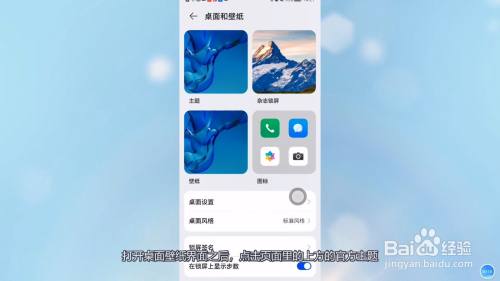 华为手机的主题出现问题,就会导致下拉菜单不见,进入设置点击桌面和壁纸。