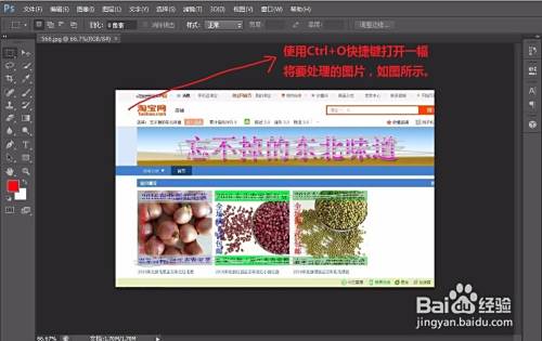 打开PS软件,利用Ctrl+O快捷键打开一副我们将要处理的图片。