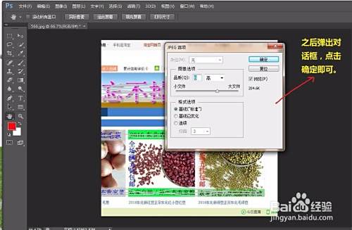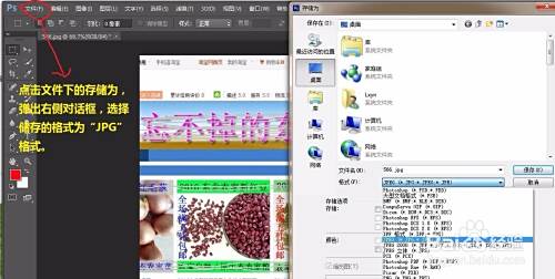 点击文件下的“存储为”,弹出对话框,选择存储的格式为“JPG”格式,点击确定。