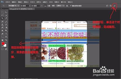 利用鼠标调整要展示的部分,其余部分自会被裁剪掉。完成后点击右上角的对号,完成裁剪。