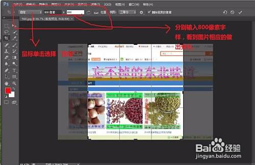 单击左侧的裁剪工具,设置裁剪的条件为“自定”,然后分别输入800像素字样。如图所示。