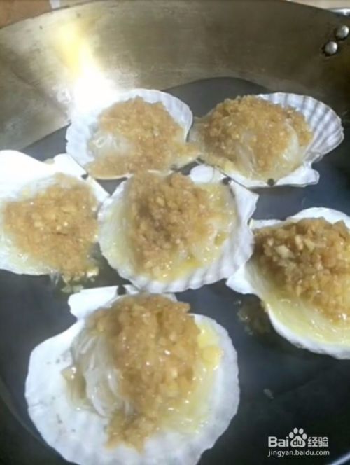 5、把准备好的扇贝上锅蒸5分钟,撒上香葱、红辣椒即可。