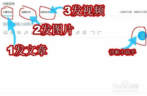 进入编辑器看到1发文章2图片集3发视频,今天我们讲的是发文章,就不用动