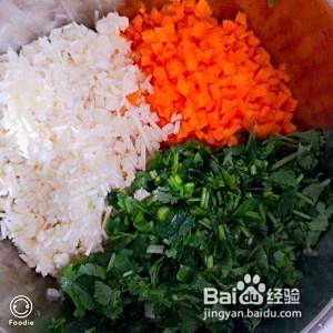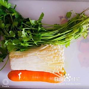 准备1把香菜,半颗金针菇,一根胡萝卜