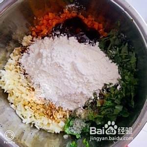 打一个鸡蛋,加入盐、鸡精、五香粉,生抽、老抽、耗油,一碗面粉。