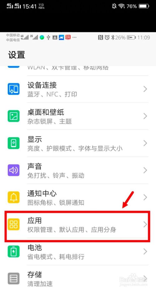 进入设置功能后,滑动屏幕,找到“应用”图标,点击进入