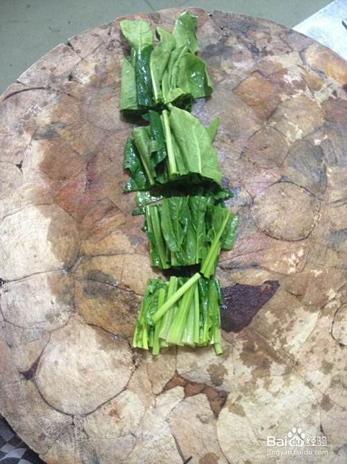 菠菜洗净泥土,一切三 备用。