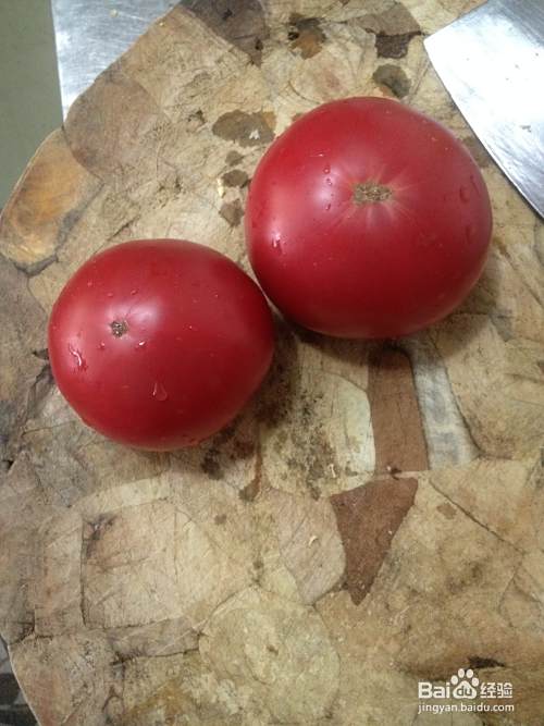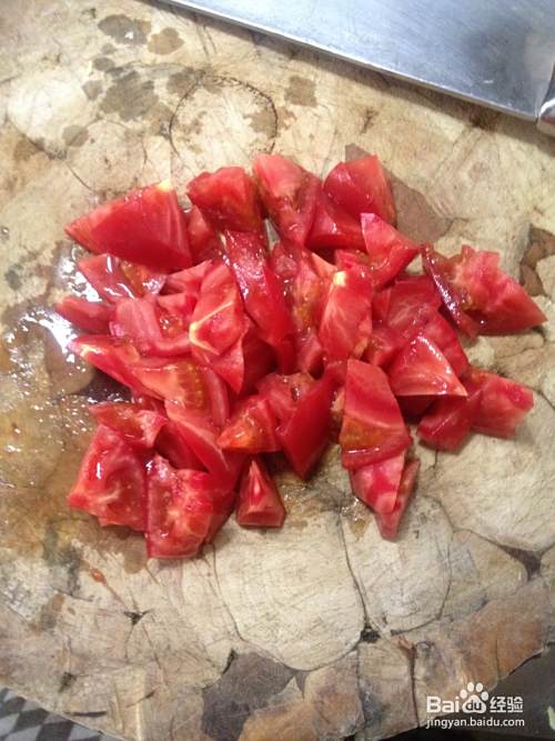 西红柿洗净,切成大拇指大小的块。木耳泡好备用