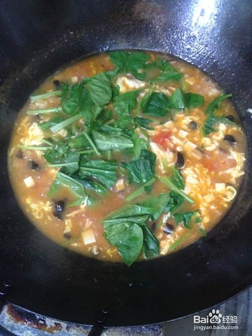 加入鸡蛋,菠菜,大火烧开后关火。