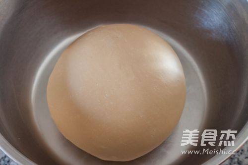 6揉搓成光滑的面团,放在盆中,盖好保鲜膜进行一次发酵至两倍大,戳指不回弹即可。
