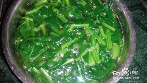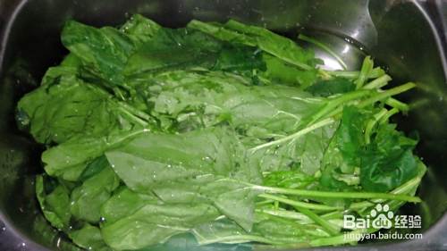 买来的菠菜择好冼净,浸泡在盐水里15分钟左右。以便有效去除农药。