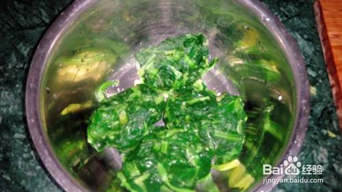 放在开水锅中焯一下,能够去除菠菜中含有的对人体无益的草酸。焯好后,过冷水并挤去水分放入盆中。