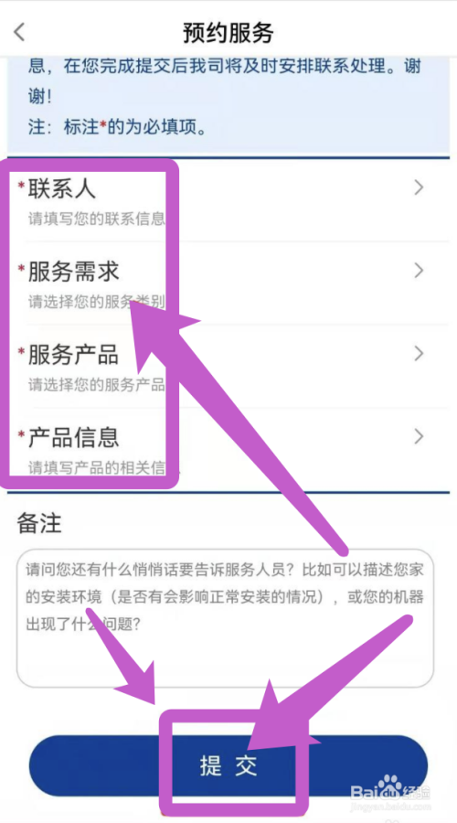 然后填写空调出现的故障及产品信息,点击下面的【提交】按钮等待工作人员上门维修就可以了。