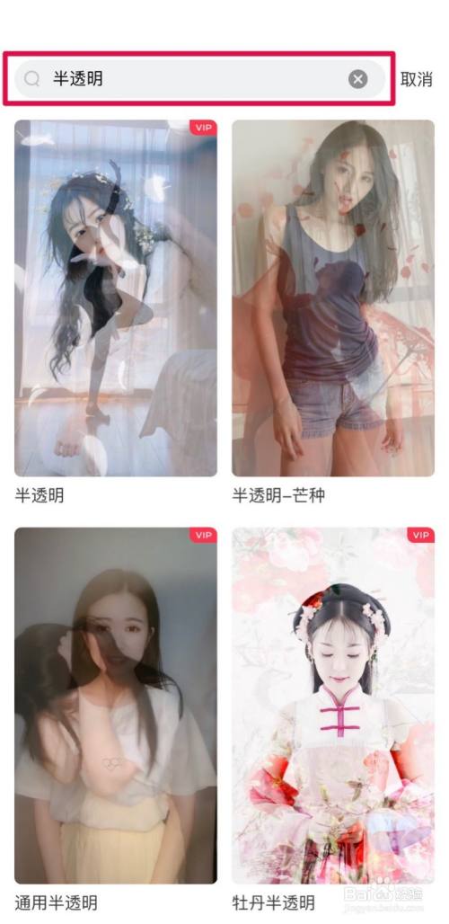为了快速找到喜欢的模板,可点击上面的搜索框,搜索关键词【半透明】,就可以找到喜欢的视频模板啦~