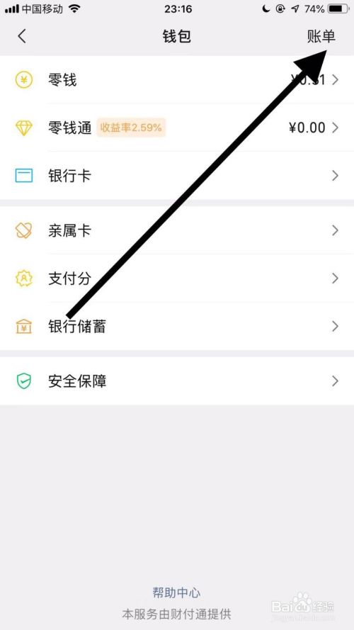 然后点击账单。