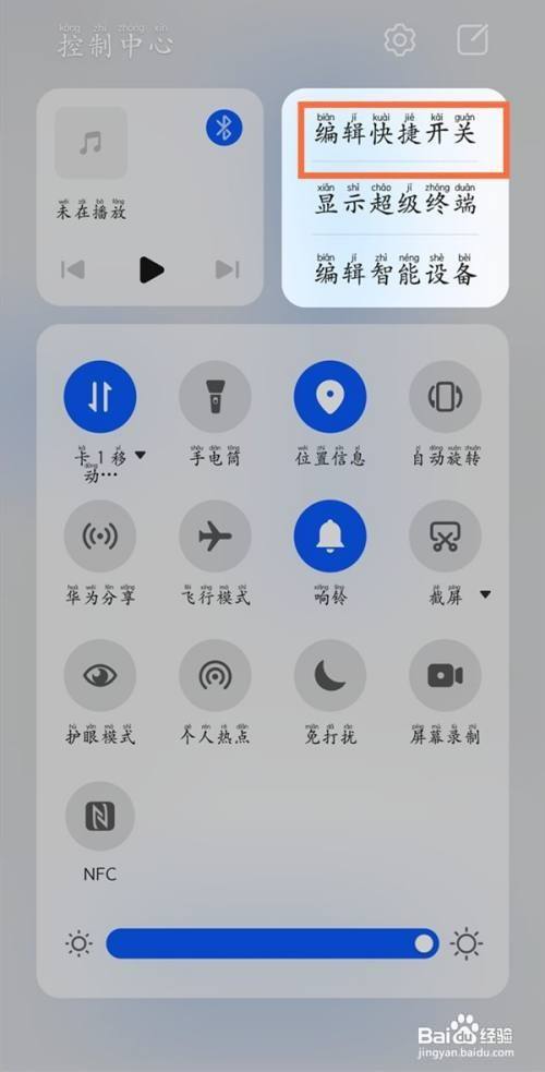 1.从屏幕顶端右侧下滑打开控制中心,点击编辑快捷开关。