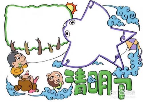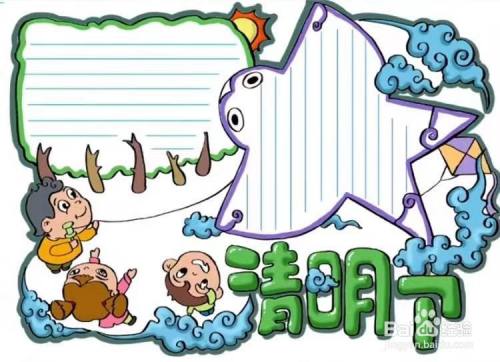 最后,给整个手抄报的外在边沿描一遍墨绿色的边,再给“清明节”涂上高光,再画出直线,这样就完成啦!