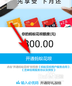 接下来在蚂蚁花呗界面,点击开通蚂蚁花呗,如下图所示
