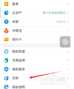 在支付宝我的界面,点击进入花呗