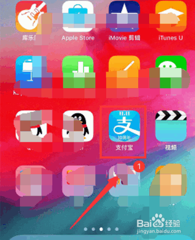 打开手机界面,进入支付宝,如下图所示: