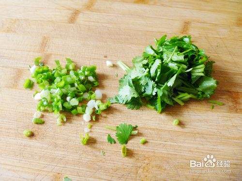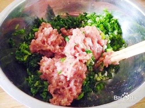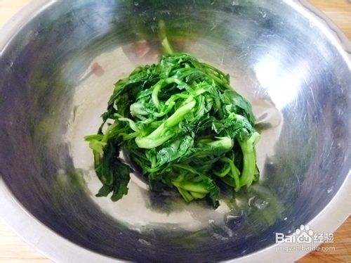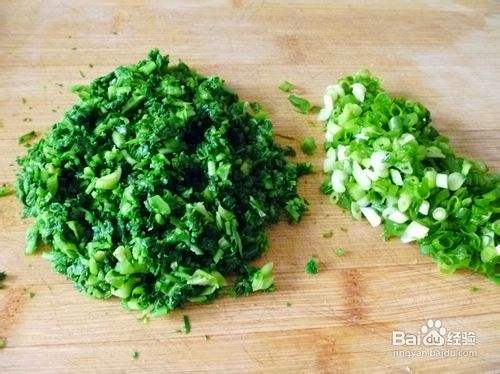 9然后放入芥菜碎和香葱碎搅拌均匀即可。