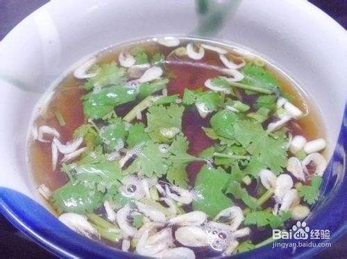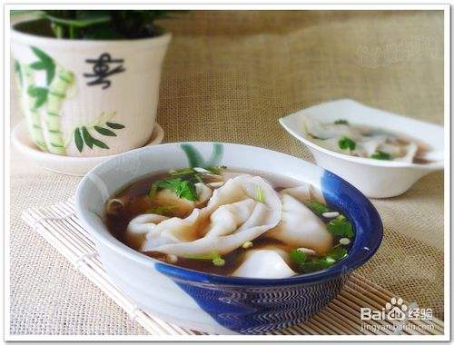 15在等待煮馄饨时候碗内提前放入盐、热鸡汤或者鸡汤加上馄饨汤、生抽、醋、香油调料。