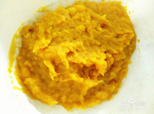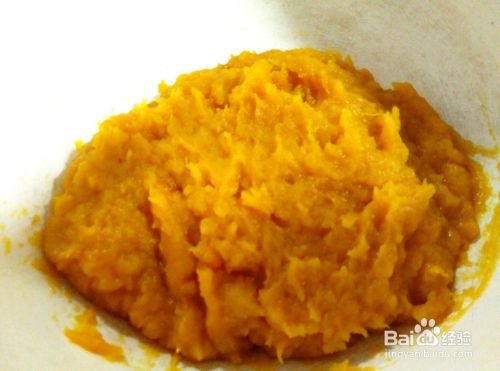 用勺子把南瓜捣成泥。